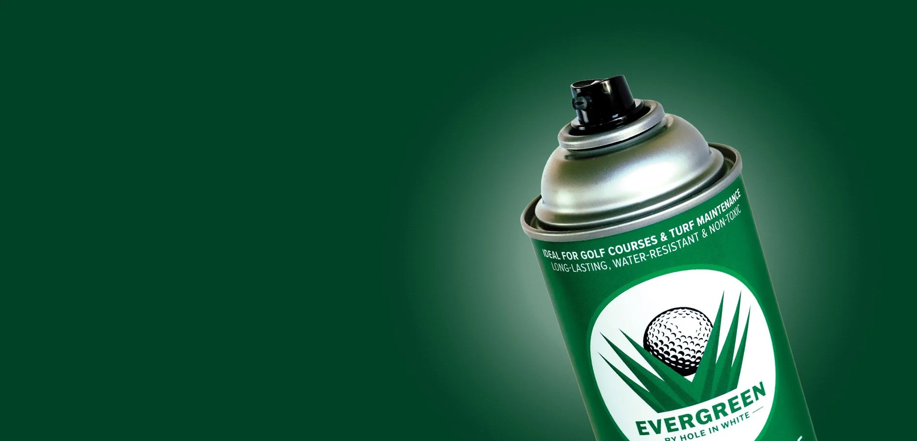 Evergreen by Hole in White®, is a professional-grade turf colorant that instantly conceals brown, damaged, or stressed grass, shrubs, and bushes. Ideal for golf course superintendents and grounds crews, its fast-drying, non-toxic, and water-resistant formula is safe for turf, people, and the environment, and allows grass to continue growing while masking unsightly areas.